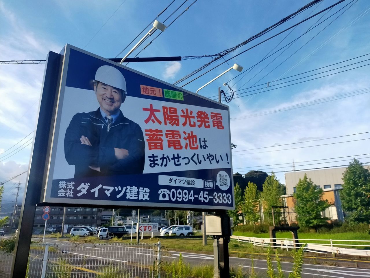 弊社は新築・リフォーム・リノベーション・太陽光発電システム・水回りリフォーム・塗装・動画広告と無理のない範囲で幅広く取り扱いさせて頂いているのですが、鹿屋市の大隅鹿屋病院前にある動画広告用のビジョンの背面にせっかくだったら、何かしら野立看板として活用しては?という話になりました。